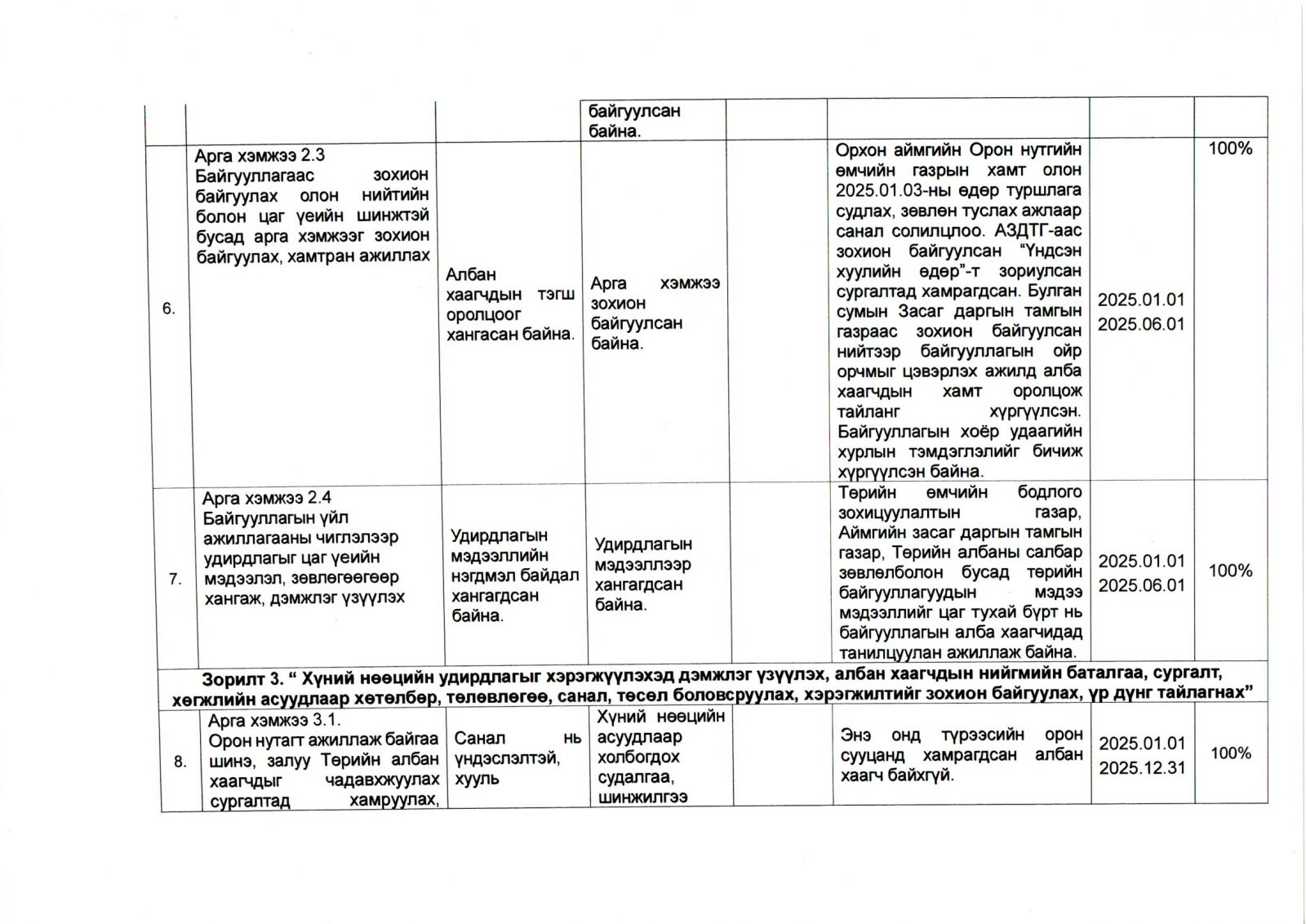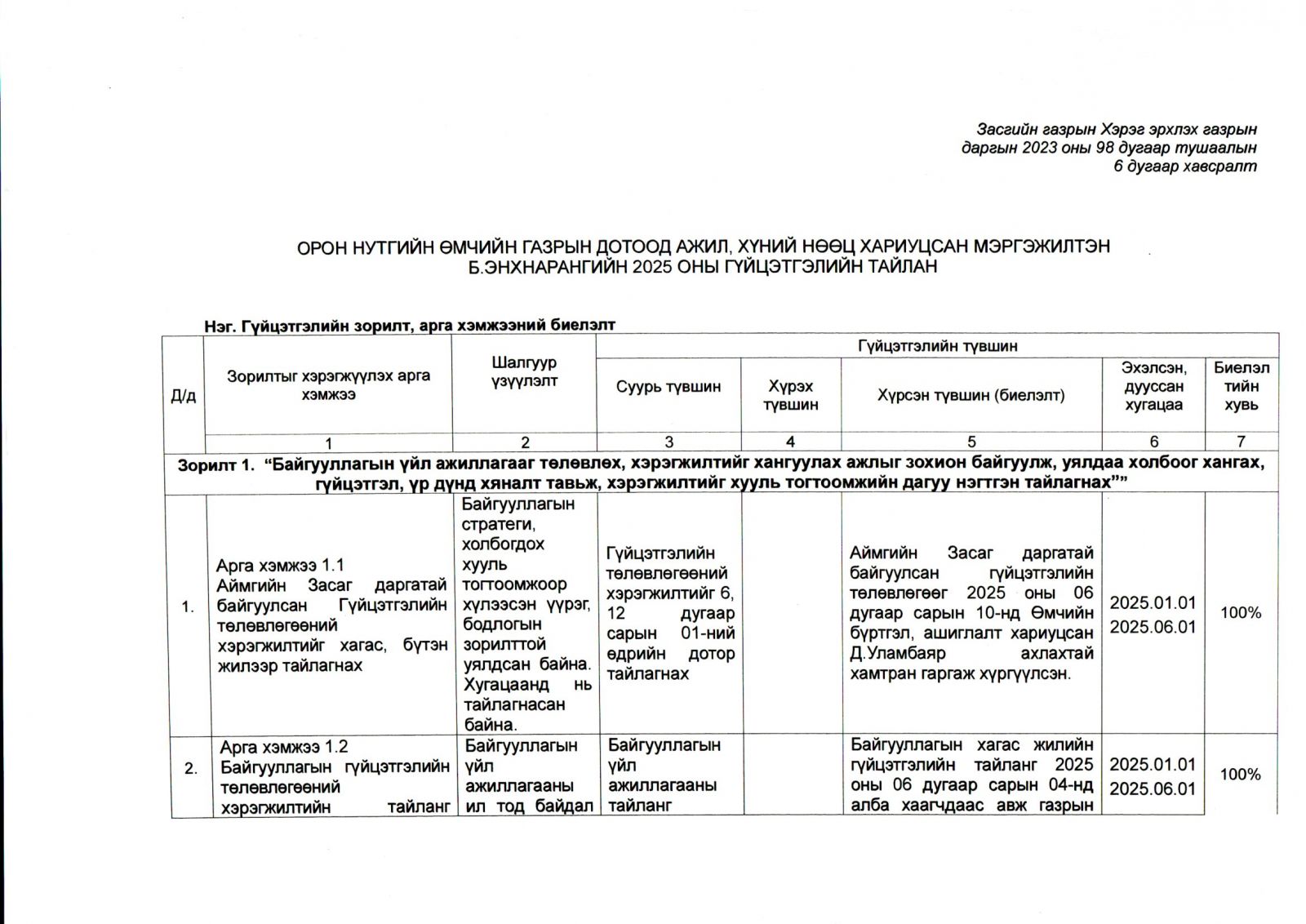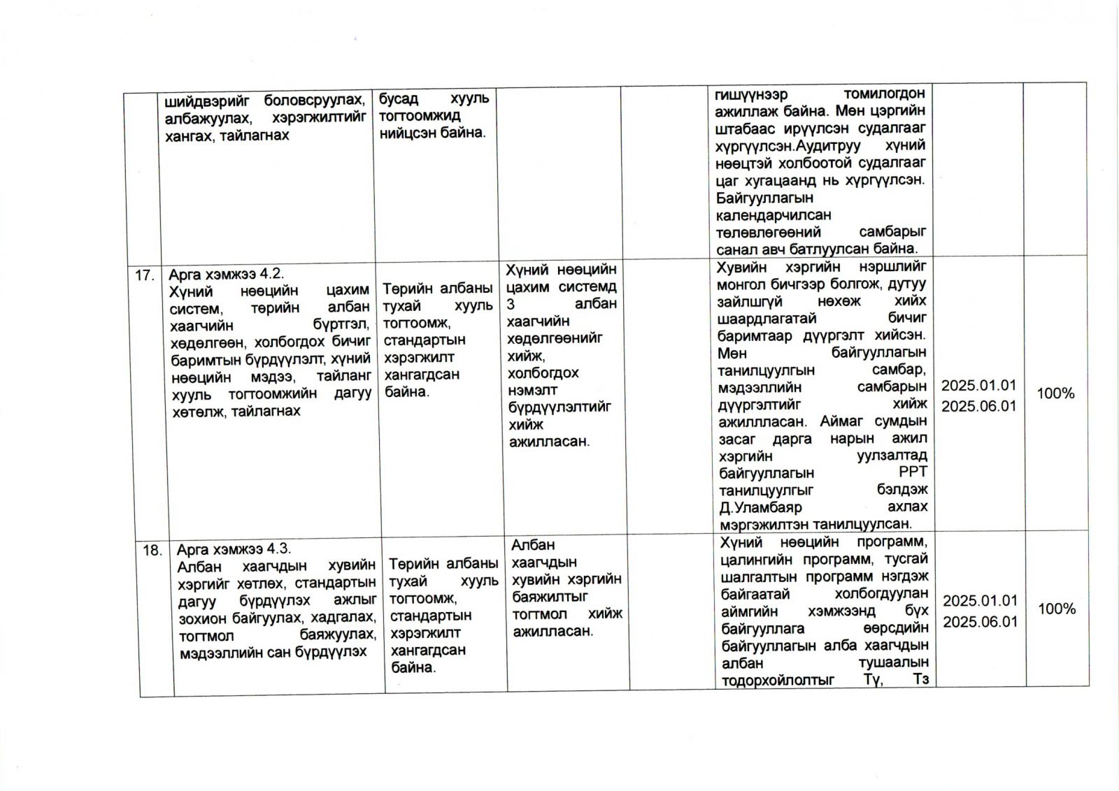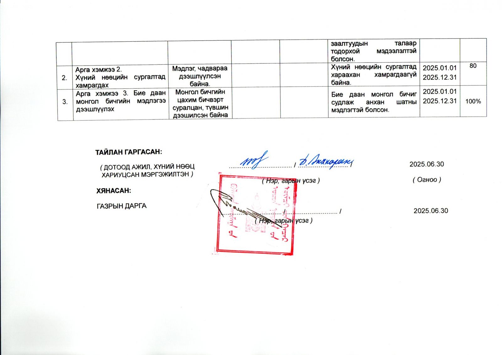 Алба хаагчдын 2025 оны эхний хагас жилийн гүйцэтгэлийн тайлан, үнэлгээний хуудас