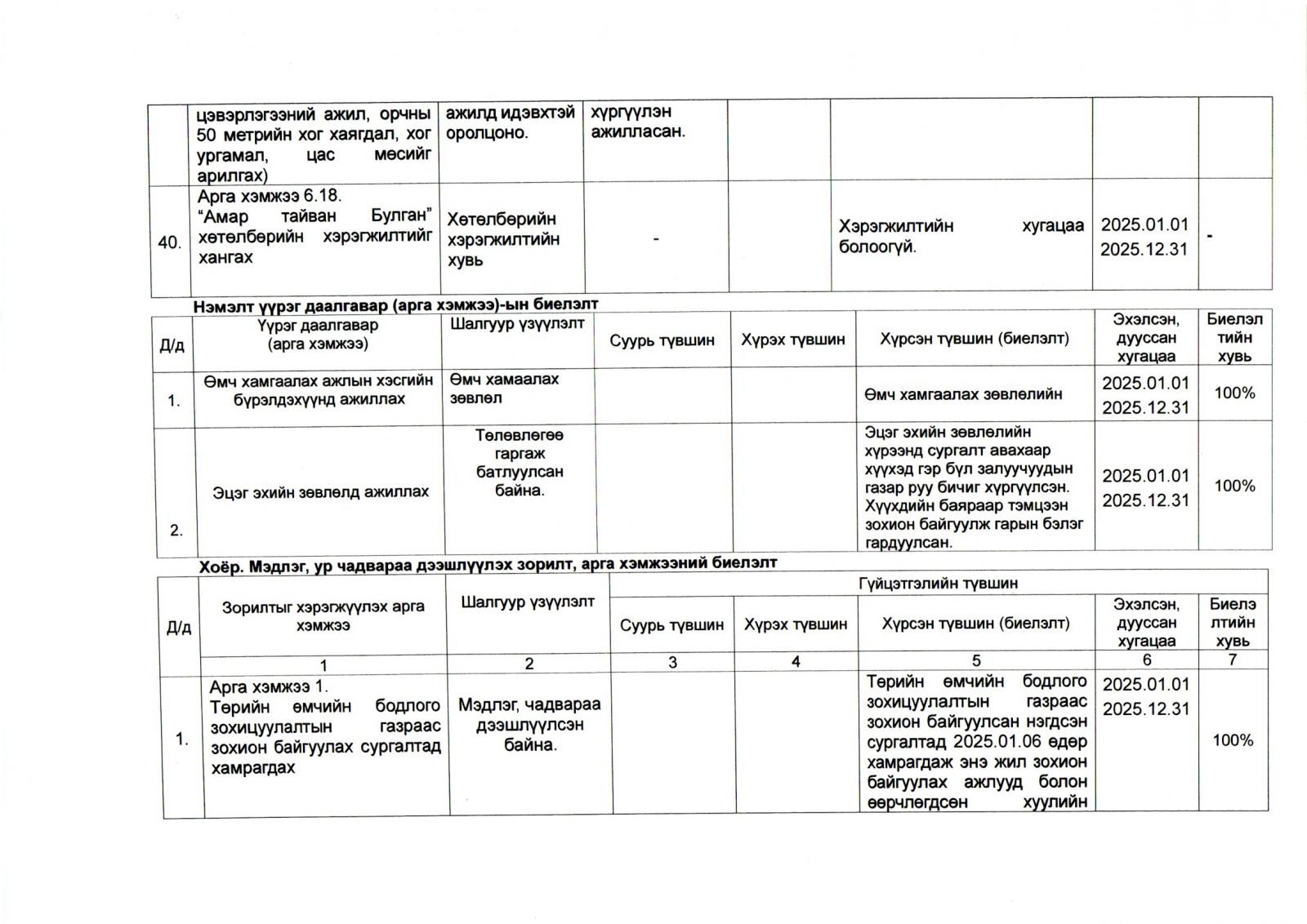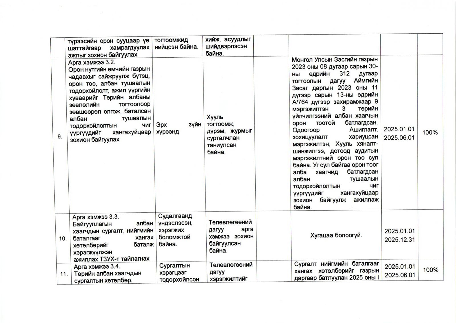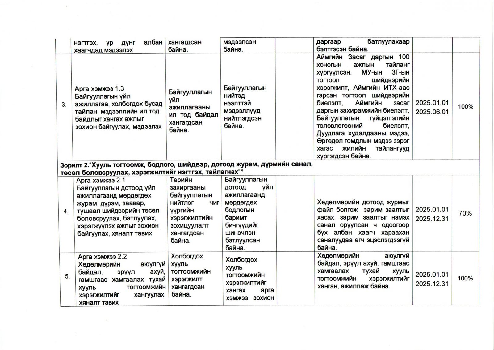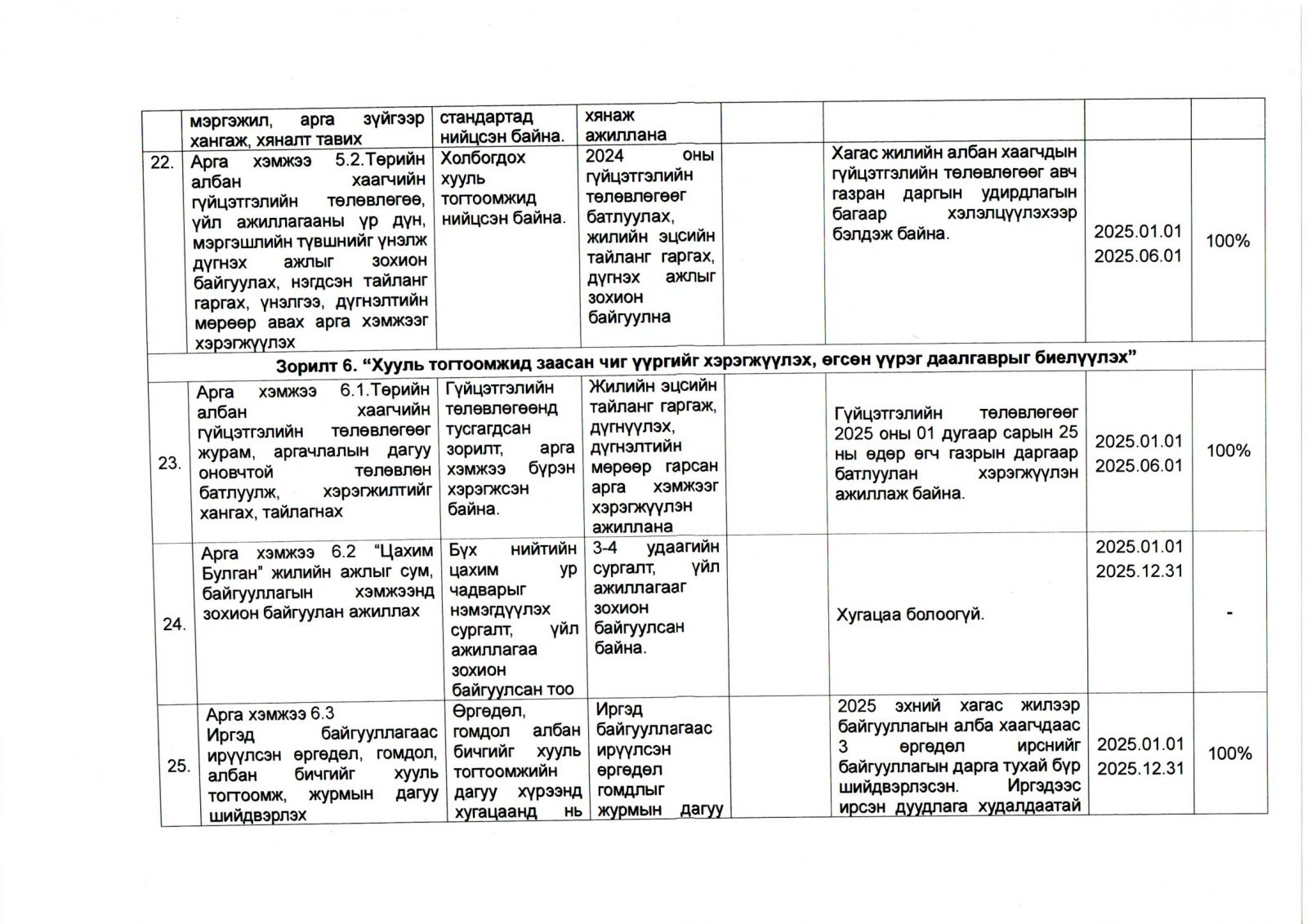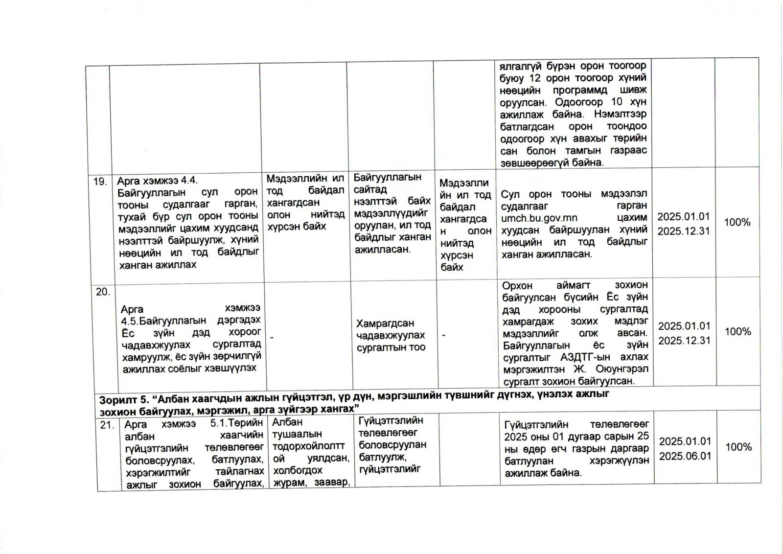 Алба хаагчдын 2025 оны эхний хагас жилийн гүйцэтгэлийн тайлан, үнэлгээний хуудас